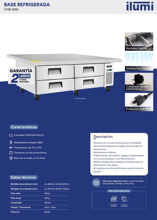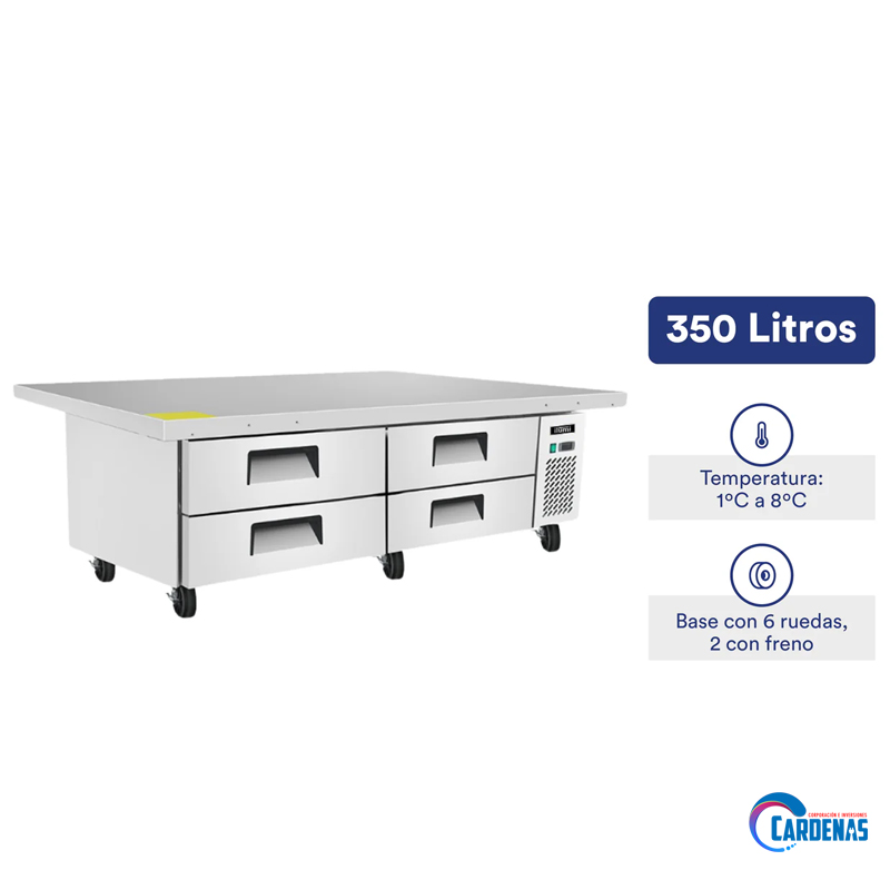 La Base Chef Refrigerada es el aliado perfecto para cocinas profesionales que buscan mantener ingredientes siempre frescos mientras optimizan el espacio de trabajo. Su diseño práctico funciona como mesa de preparación o soporte para otros equipos.