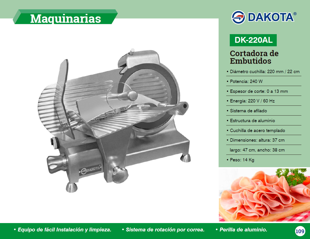 REBANADORA DE EMBUTIDOS 220MM PERILLA DE ALUMINIO DAKOTA MOD: DK-220AL
