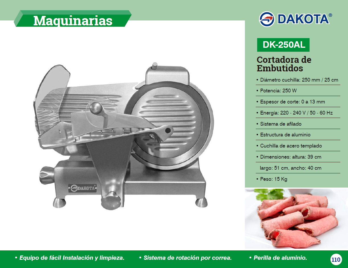 REBANADORA DE EMBUTIDOS 250MM PERILLA DE ALUMINIO DAKOTA MOD: DK-250AL