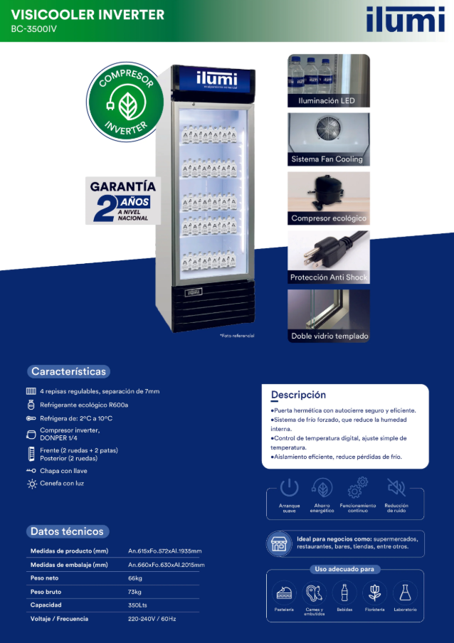 El Visicooler Inverter es la solución ideal para negocios que buscan refrigeración eficiente y ahorro energético. Gracias a su tecnología Inverter, este equipo optimiza el consumo de electricidad al ajustar automáticamente la velocidad del compresor, proporcionando una temperatura estable y reduciendo el desgaste del sistema.